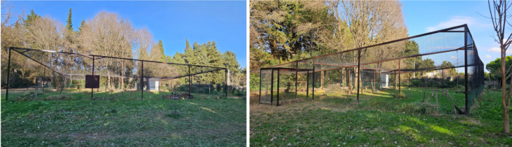 Conçue spécifiquement pour accueillir Thor Hoc, un grand corbeau (envergure d’1,50 m) l’association a développé une volière de 250 m², véritable référence technique. Cette infrastructure accolée à un espace de vie conçu pour garantir une sécurité optimale, garantit l’expression effective des capacités de déplacement et de vol, indispensables à l’équilibre physiologique et à la préservation de la santé de l’oiseau.