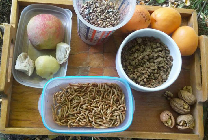 Après 2 à 3 heures au calme, et si l’oiseau a pu se réchauffer, laissez-lui à disposition un petit récipient d’eau ( 3cm de profondeur), ainsi que :