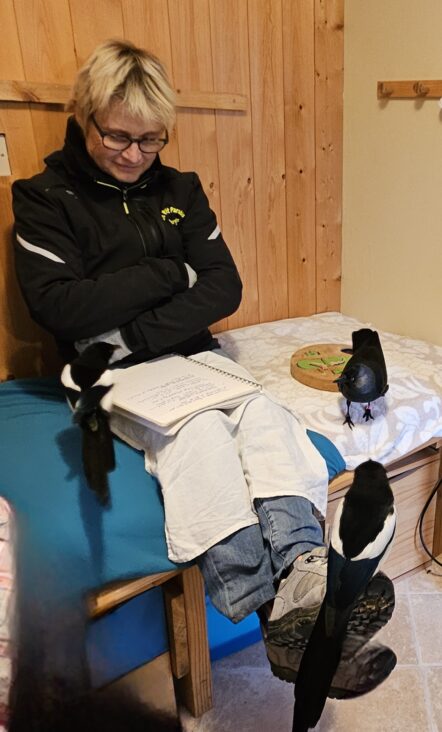 L’approche pédagogique repose sur une expérience de terrain approfondie, notamment auprès de corvidés imprégnés à l’humain. Véronique Bialoskorski a accompagné des centaines de situations complexes : troubles du comportement, comportements dits agressifs ou difficultés de cohabitation. Elle assure par ailleurs une veille scientifique active et une formation continue en cognition et sciences comportementales, afin de proposer des contenus actualisés et rigoureux. Elle est la seule française ayant travaillé avec un corbeau freux pour des prestations publiques, en itinérance. Sa longue pratique auprès de corvidés imprégnés est une source d’enseignements concrets, permettant d’illustrer les apports théoriques par des situations réelles, observées et analysées sur le long terme. Cette expérience de terrain confère à la formation une dimension appliquée rare, centrée sur la compréhension fine des comportements, l’adaptation des pratiques et la recherche de solutions respectueuses, tant pour l’oiseau que pour l’humain, dans des contextes souvent complexes et sensibles.
